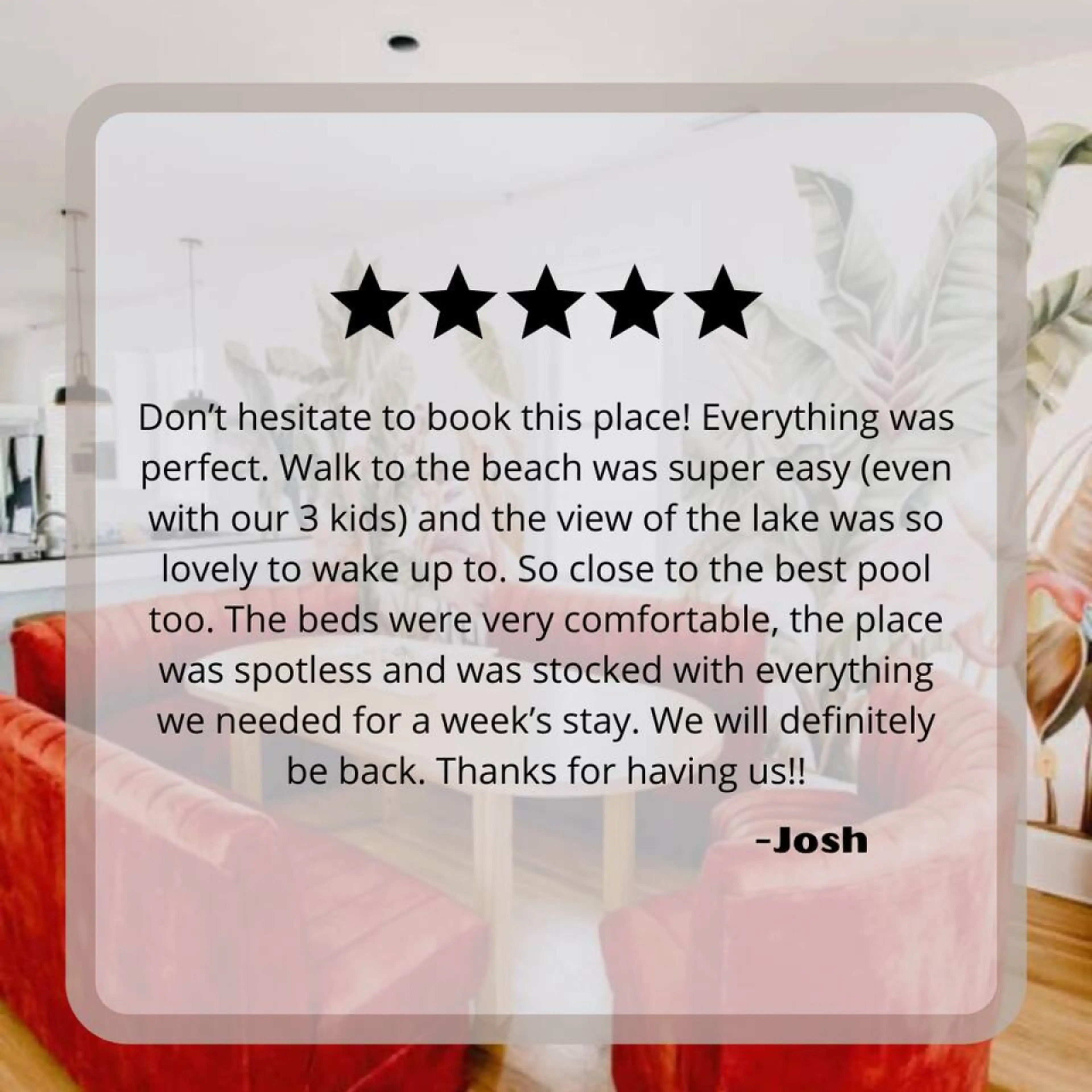 We had a wonderful time. Host was super responsive. Place was beautiful and welcoming.